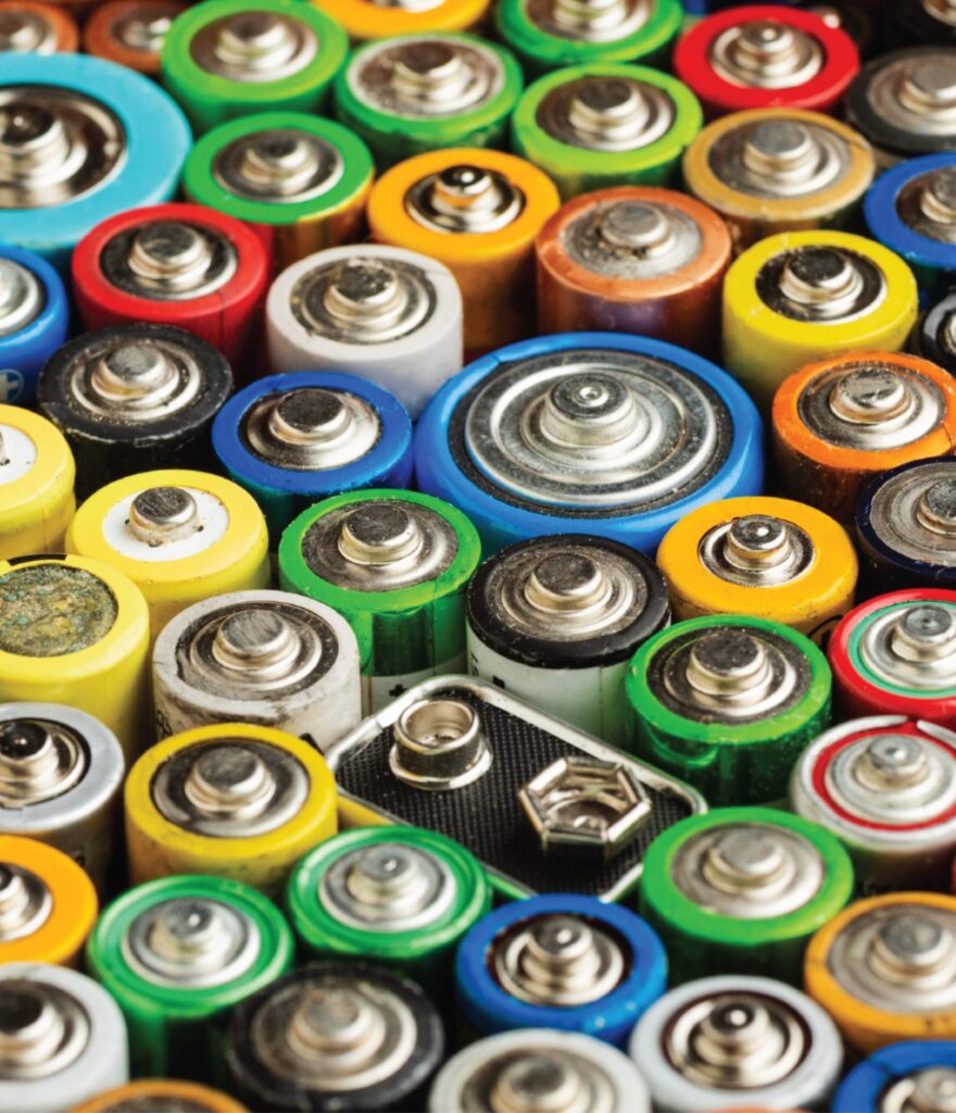 Recycling is the best way to dispose of batteries. Common types include single-use (standard AA, AAA, 9V, button/watch, etc), rechargeable, and lithium-ion (found in cell phones, wireless headphones, laptops, and vape pens).